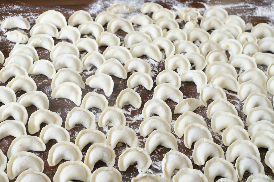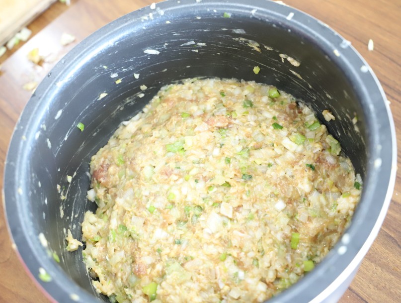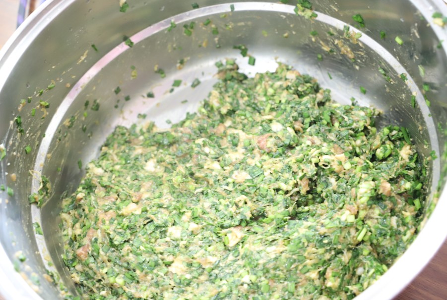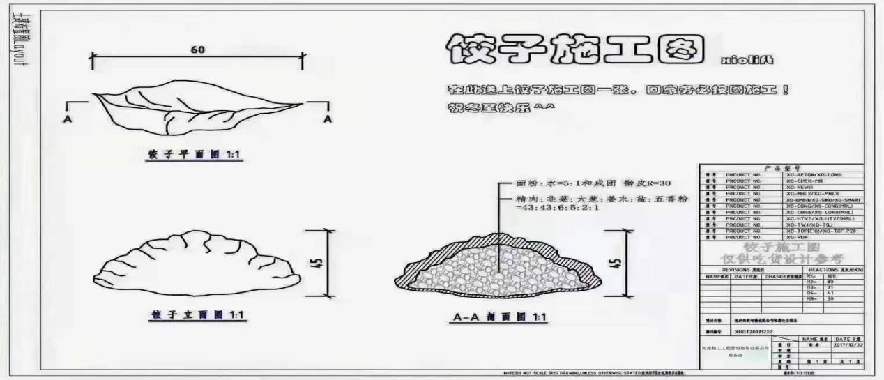 本次“餃子”制作依舊采用傳統(tǒng)的施工工藝:“剁”-“調(diào)”-“拌”-“和”-“盤”-“搟”-“包”。