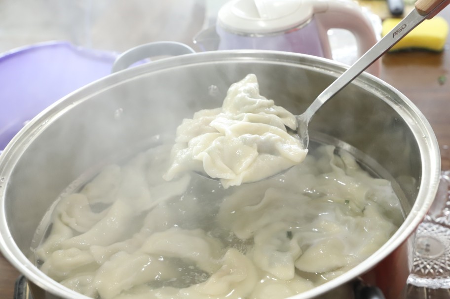 在一群人員千呼萬喚下,餃子新鮮出爐了!