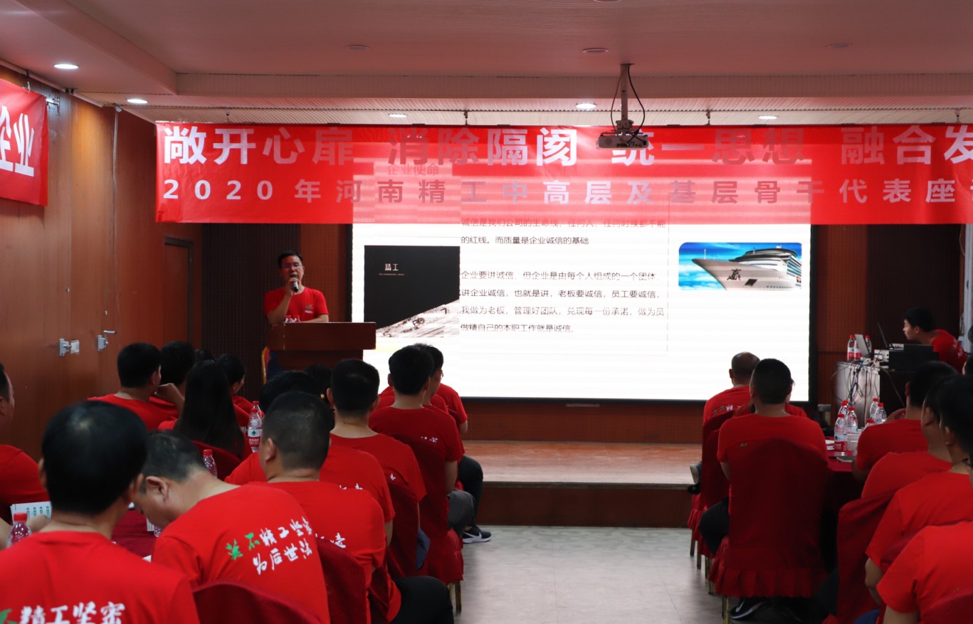 河南精工工程管理咨詢有限公司于2020年9月12日至13日在櫻桃溝部落培訓基地舉辦《2020年中高層及基層骨干代表企業文化座談會》,公司中高層領導班子、各行政部負責人及骨干代表共計55人參加了本次座談會,會議由綜合部經理石素敏主持。
