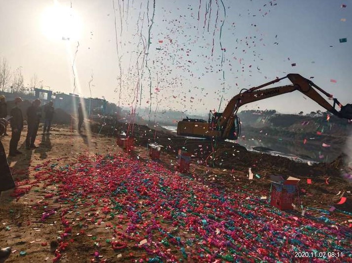 彩炮聲中,挖掘機(jī)隆隆啟動(dòng),機(jī)械挖掘斗在旭陽(yáng)的照射下深入地下破土而出,至此標(biāo)志著桐柏縣基礎(chǔ)設(shè)施道路橋梁工程安瀾路跨越淮河橋梁工程正式開(kāi)工。