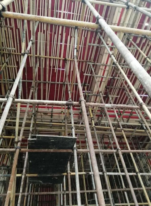 檢查小組在現場認真對項目大樓內支模架步距、縱距進行實測。實測中模架體立桿步距達到1.9米,縱距達到2米,嚴重違反了專項施工方案。板下部立桿已呈現嚴重傾斜狀態,檢查小組及時發現問題,要求監理部及時下發指令,督促整改,降低了質量安全事故發生概率。
